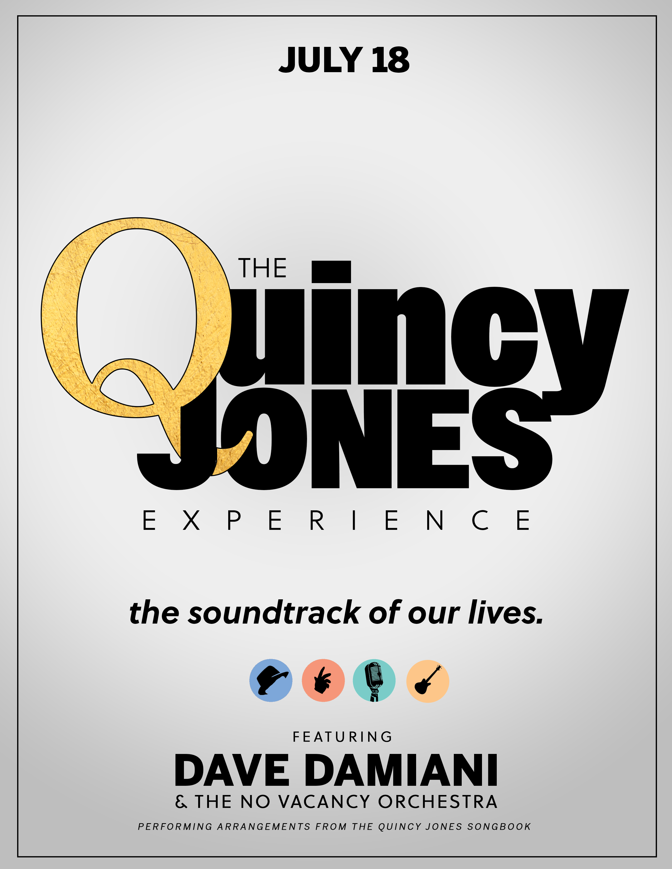 Join Dave Damiani and Dave Siegel for an incredible evening of entertainment in Atlantic City. The NO VACANCY ORCHESTRA will pay tribute to the master Quincy Jones for an 80 minute orchestral show playing the music from: Michael Jackson, George Benson, Frank Sinatra, James Ingram, Diana Ross, Brothers Johnson and more...